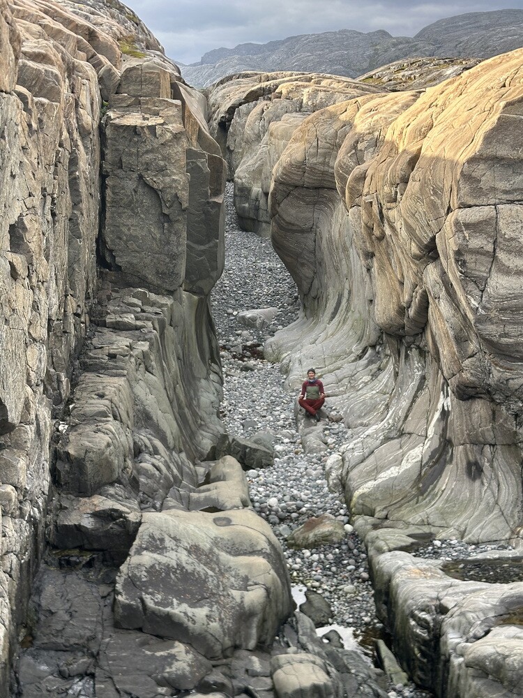 Машина забросит нас за КПП в Лиинахамари, здесь на очередном изгибе дороги мы сойдем, упакуем общее снаряжение и двинемся в путь. Наш путь будет идти по тропе сначала среди скал, озер и большого количества растительности и деревьев, затем мы выйдем к еще более величественным горам, где сможем рассмотреть гигантскую щель в скале высотой не иначе как с девятиэтажный дом! Здесь же рельеф станет необычным – впереди нас ждет большое тундровое поле, с трех сторон окруженное скалами, с левой и правой стороны отвесные неприступные утесы, впереди прекраснейший фьорд – Долга щель! Где-то рядом бежит речушка, через которую мы будем перескакивать пару раз.