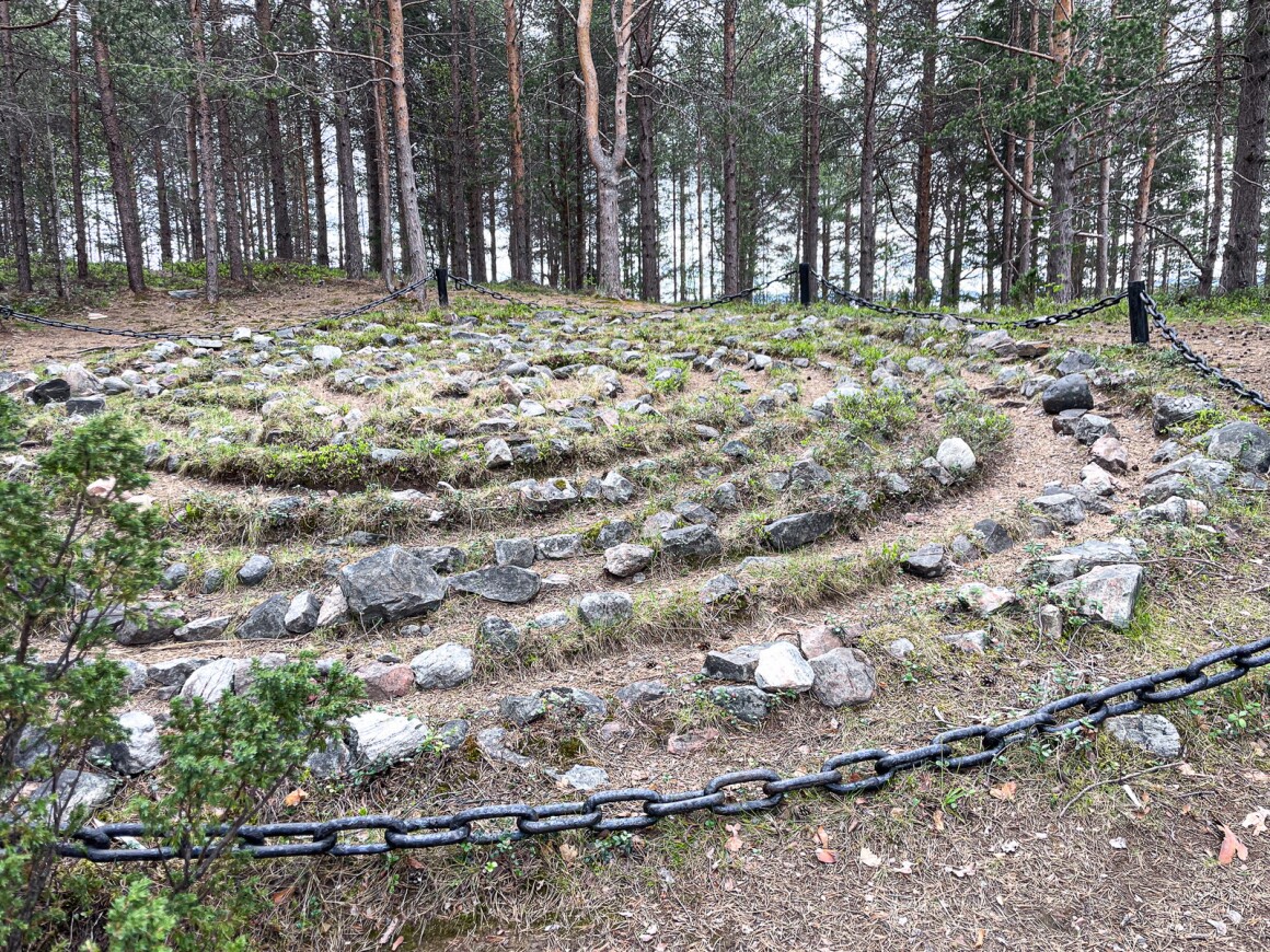 Начинаем увлекательное путешествие на морских каяках по Кандалакшскому заливу. Любуемся с воды на богатую местную флору и фауну. До первой нашей остановки проходим 4 км. На мысе губы Малый Питкуль выйдем на берег. Здесь расположен каменный лабиринт «Вавилон». Его возраст достигает 4000 лет.