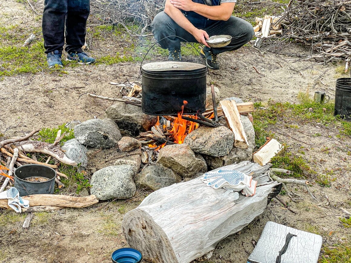 4 деньКоашкар - Ловозёрские тундрыТреккинг на Коашкар. Проходим ущелье с небольшими живописными озерцами (возможно, купаемся по пути), поднимаемся на невысокую гору Коашкар, откуда открываются виды Хибин, Умбозера и Ловозёрских тундр на противоположной стороне озера. В лагерь возвращаемся вечером. Сегодня банный день!