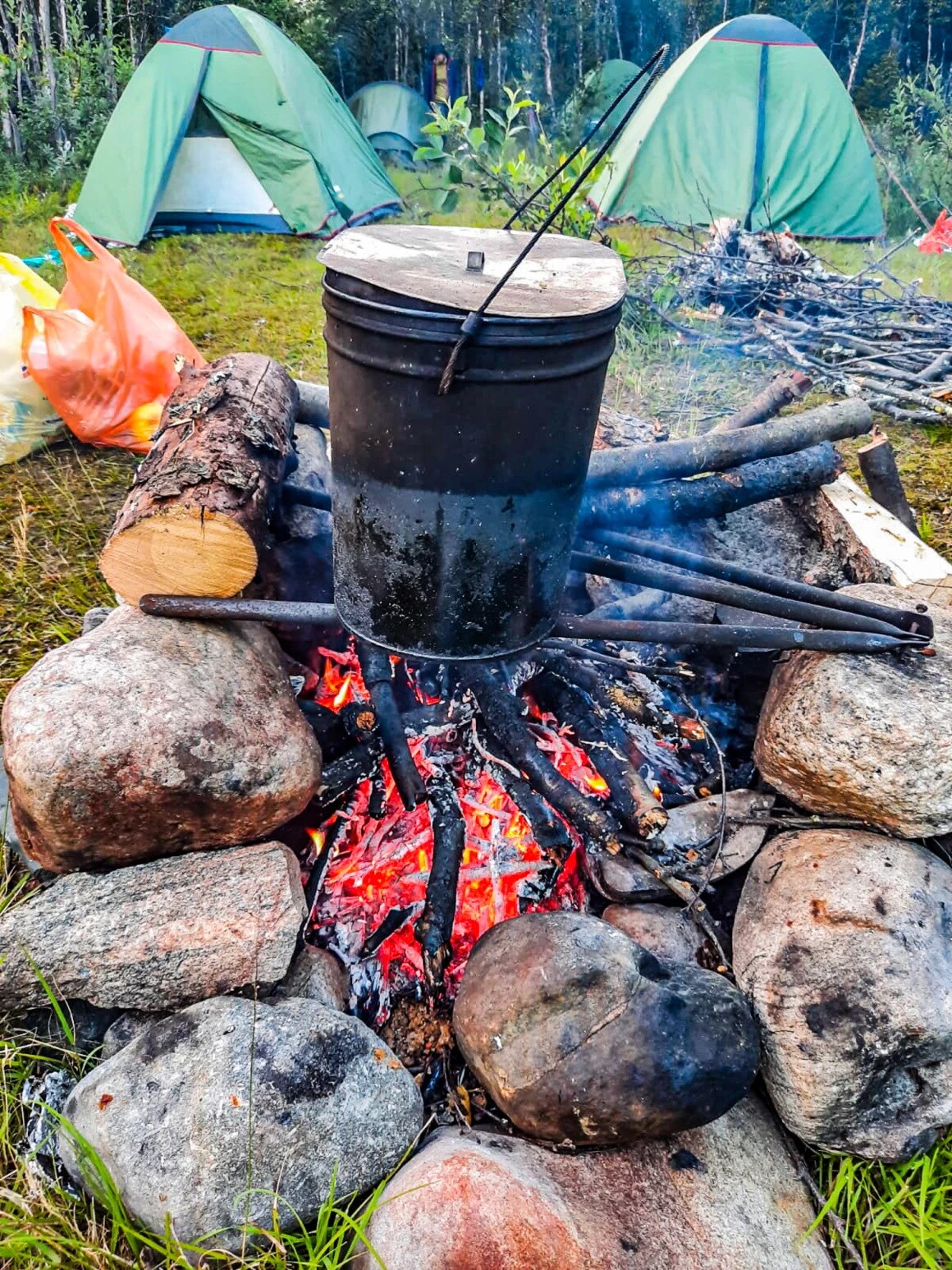- общественное снаряжение для бивуака (горелки, кастрюли, газ, баня, тент-палатка);