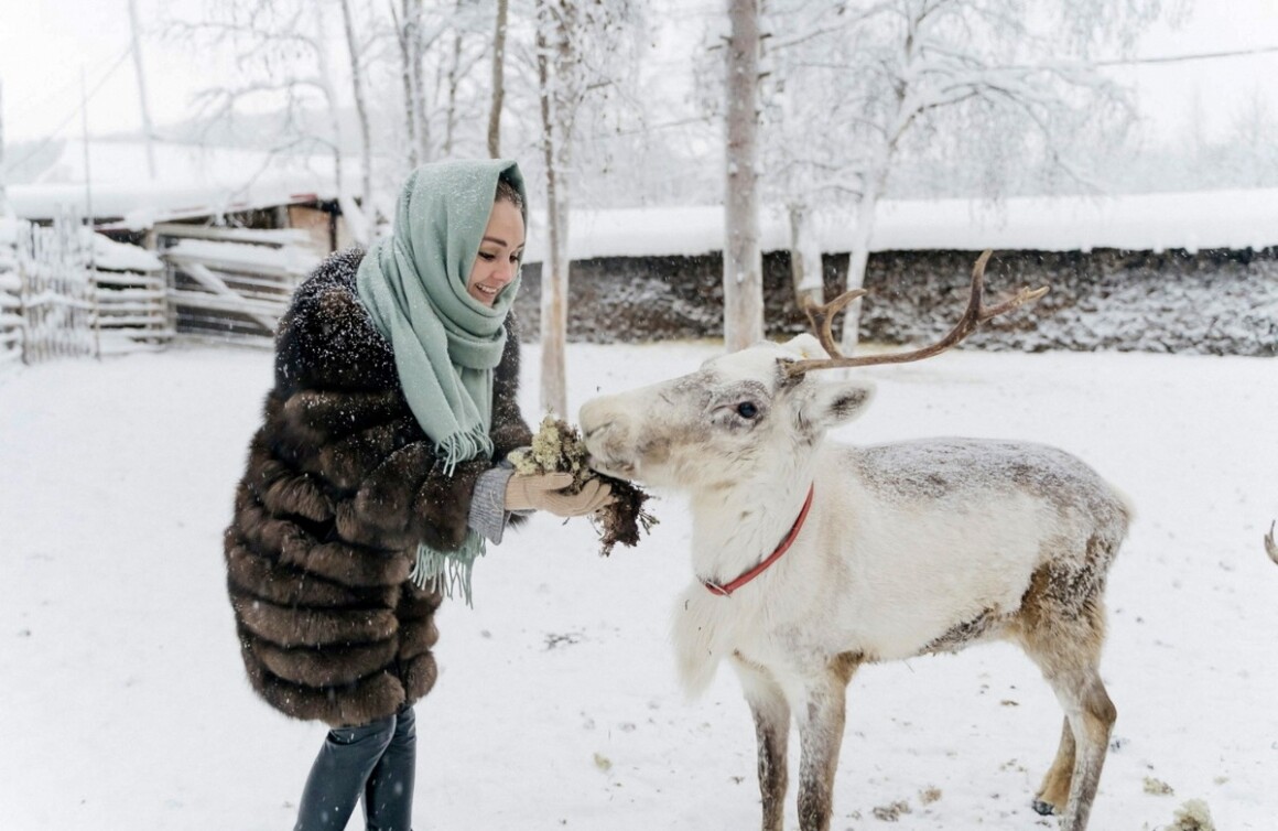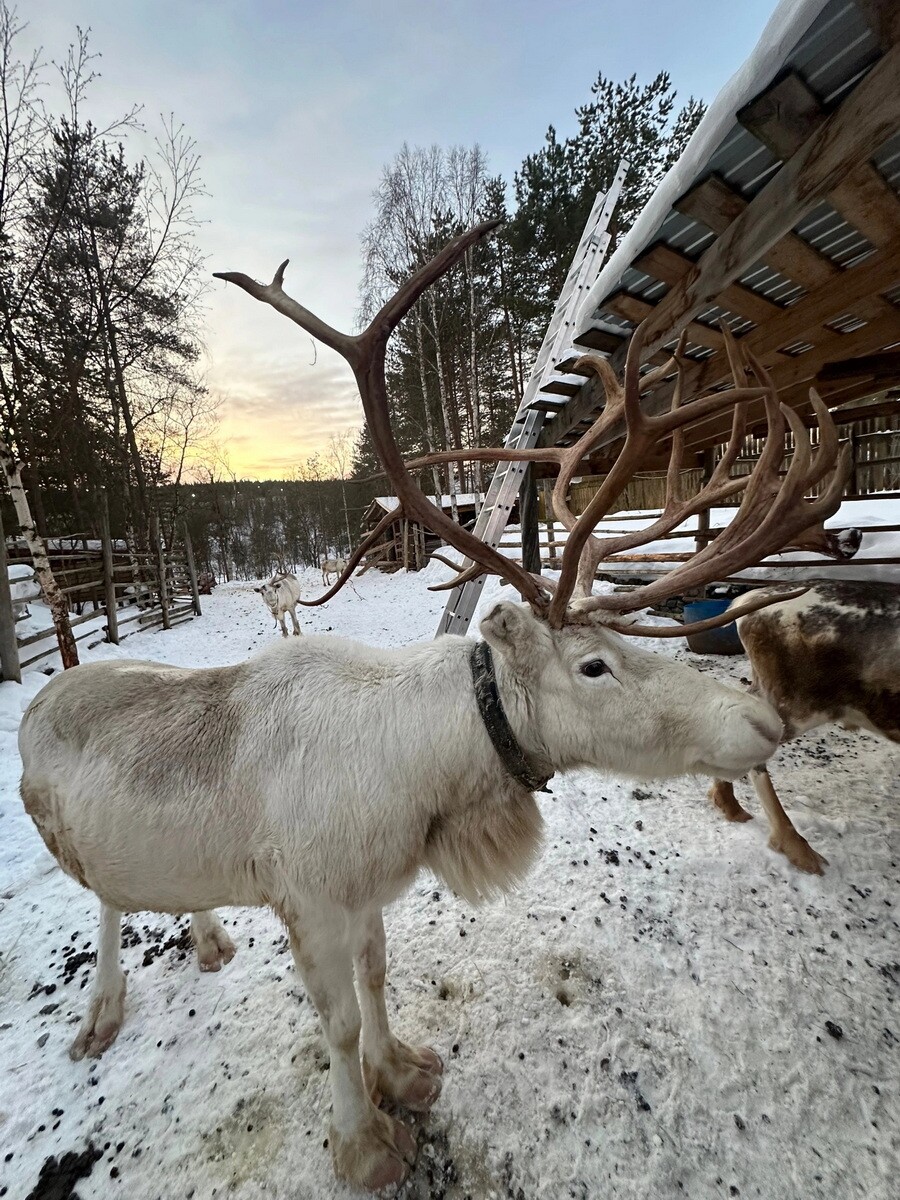После завтрака мы отправляемся в уникальное место — Саамский Олений двор (всего 40 минут в пути). Здесь вас ждёт личное знакомство с гордым красавцем — северным оленем. Вы сможете погладить его, угостить ягелем и узнать о его удивительном характере и повадках.