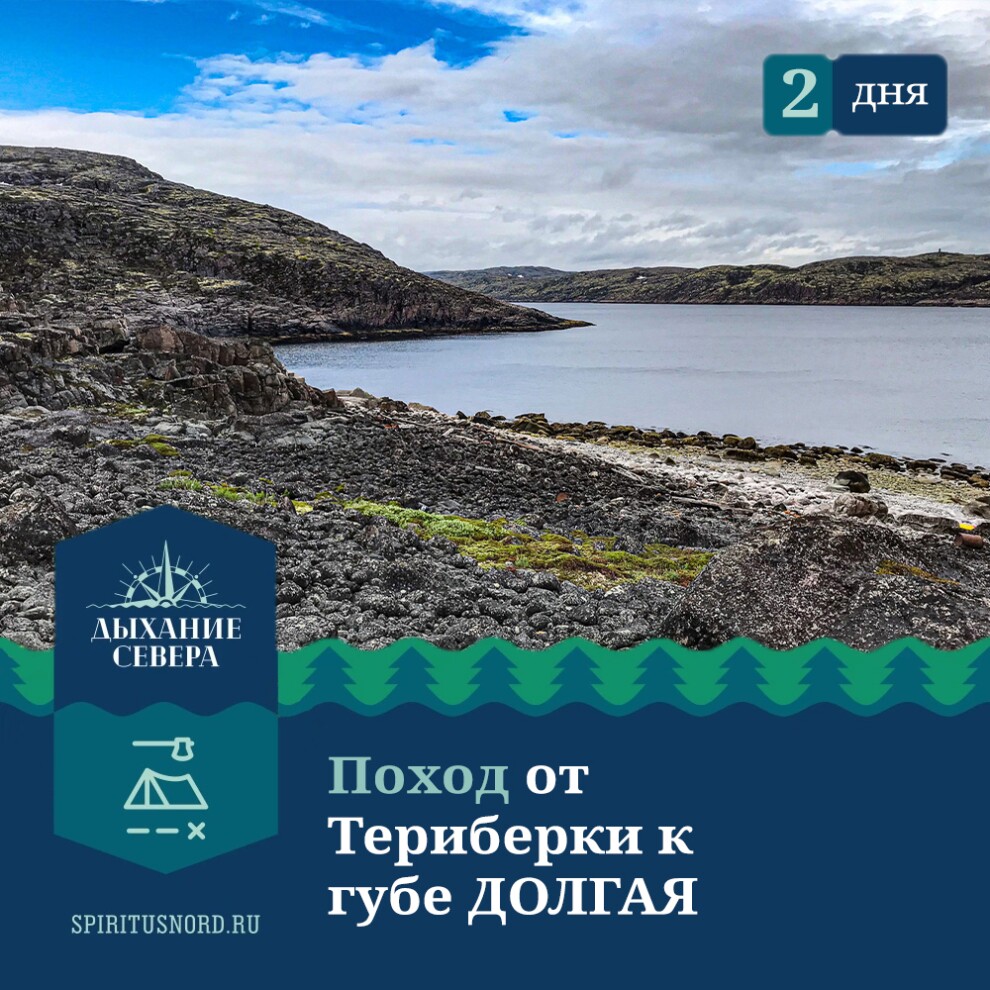 1 деньМурманск — Териберка — губа ДолгаяВстречаемся в городе Мурманске (Кольский 131А) и 9.00 отправляемся на нашем транспорте на старт нашего путешествия в поселок Териберка. Здесь мы оденем рюкзаки и пройдем вдоль побережья Баренцева моря через Природный парк «Териберка», Батарейский водопад, а также дойдем до Батареи береговой обороны. Отсюда открывается великолепный вид на Териберскую губу.