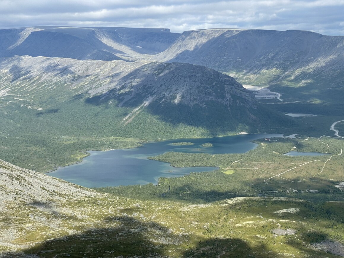 Преодолев несложный перевал нас ждет грандиозное плато, с которого открываются непередаваемые виды окрестных гор и даже соседних Ловозерских тундр. Глубина этого зрелища завораживает, но впереди нас ждет наша цель. Не спеша по старой горной дороге, незаметно подойдем к цирку, с которого и откроется озеро Академическое. Здесь мы устроим небольшой пикник.