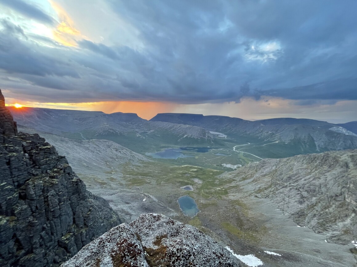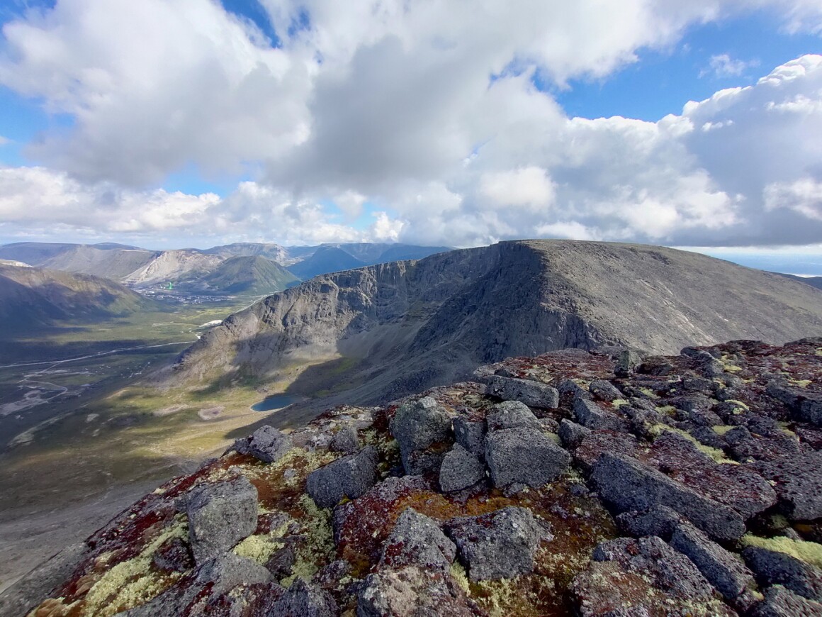 К слову, вместо вершины здесь - плоские плато. С вершины открываются атмосферные виды на Ловозерские тундры, Хибины, озеро Умбозеро.На плато мы устроим пикник.