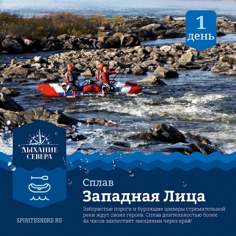 Река Западная Лица славится своими порогами - это Пятый падун, Четвертый и третий падун! Также нам встретятся такие водные препятствия как шивера "Плюшка", порог "Шампанский". Сплав длится около 4 часов, но принесет незабываемые впечатления.